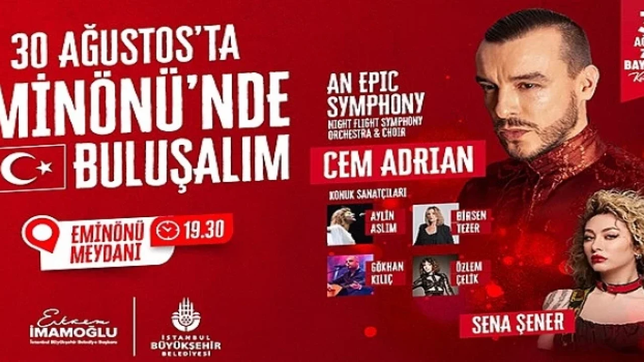 30 Ağustos Zafer Bayramı kutlama etkinliği “An Epic Symphony & Cem Adrian Konseri” ile devam edecek. Birsen Tezer, Aylin Aslım, Gökhan Kılıç ve Özlem Çelik de gecede konuk sanatçı olarak sahne alacak.