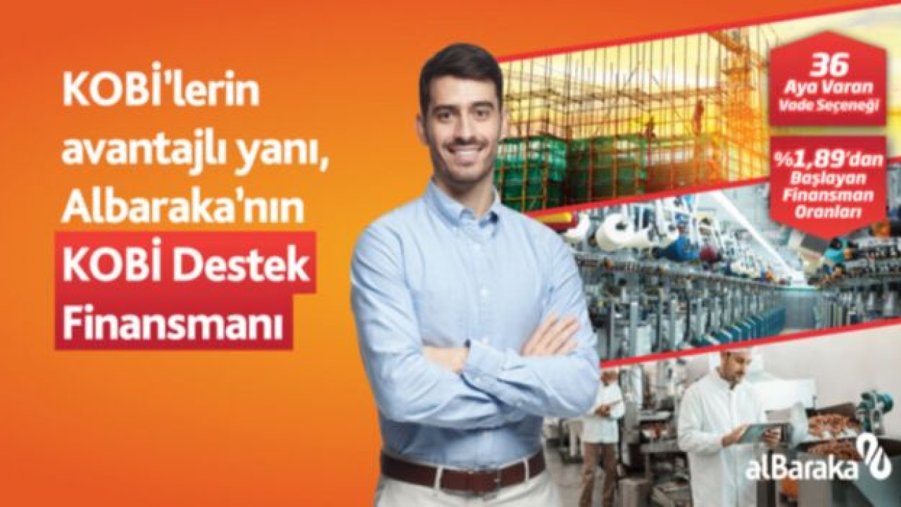 Türkiye’nin ilk katılım bankası Albaraka Türk, KOBİ’lere özel destek finansmanı kampanyasını duyurdu. KOBİ’lerimizin uygun oranlı finansmana erişimlerine destek sağlayacak KOBİ Finansmanı, %1,89’dan başlayan kâr oranı ve 36 aya varan vade seçeneği sunuyor.)