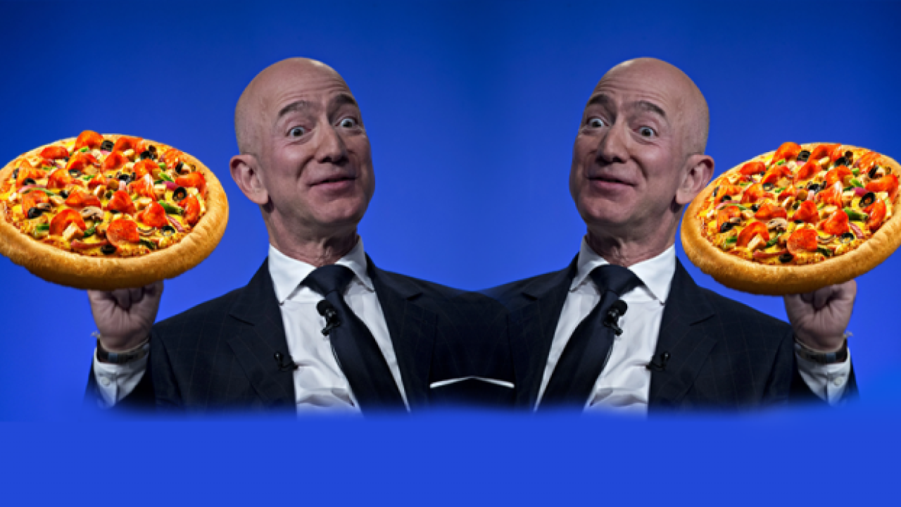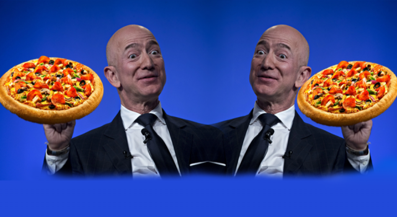 Bezos'un felsefesinin önemli ayaklarından biri olan "iki pizza kuralı" da oldukça meşhur. Bezos'un toplantı verimliliğini sağlamak için ortaya attığı bu kurala göre, katılımcıların sayısı iki pizzayla doyabilecek kadar olmalı. PowerPoint sunumları yerine elle yazılmış notlar bulunmalı.  Baskın karakterler toplantıyı alıp götürmemeli, odadaki herkes fikrini söylemeli. Üstelik her türlü fikir, zaman zaman bağıra çağıra da olsa, tartışılabilmeli.