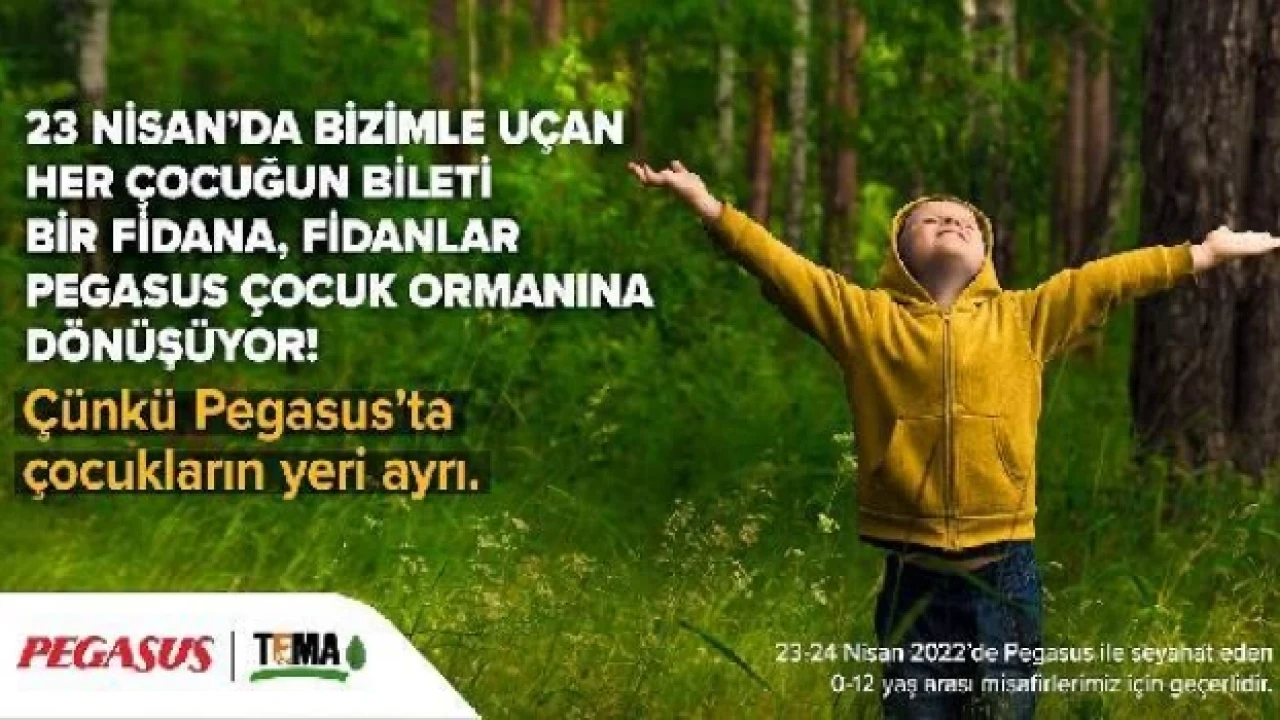 Pegasus Hava Yolları, 23-24 Nisan tarihlerinde Pegasus'la uçan her çocuğun biletini TEMA Vakfı aracılığıyla bir fidana, fidanları ise Pegasus Çocuk Ormanı'na dönüştürecek. Proje kapsamında toplam 15 bin fidan dikimi yapılacak.