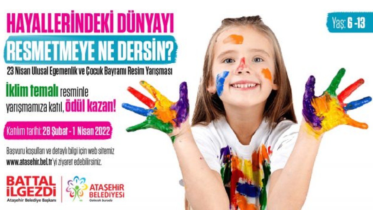 Ataşehir Belediyesi, 23 Nisan Ulusal Egemenlik ve Çocuk Bayramı dolayısıyla “Ödüllü Resim Yarışması” düzenliyor. 6-13 yaş arası Ataşehirli çocukların katılacağı yarışmada,  “iklim” temalı resimler billboardlarda ve @atasehir23nisan Instagram hesabında sergilenecek.