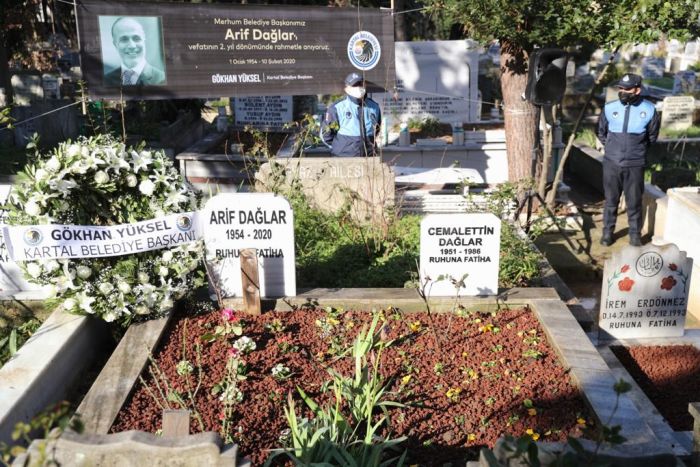 Kartal'da 2004-2009 yıllarında belediye başkanlığı görevinde bulunan ve iki yıl önce tedavi gördüğü hastanede hayatını kaybeden Arif Dağlar için Kartal Belediyesi, merhumun Soğanlık Mezarlığı'nda bulunan kabri başında bir anma töreni gerçekleştirdi.