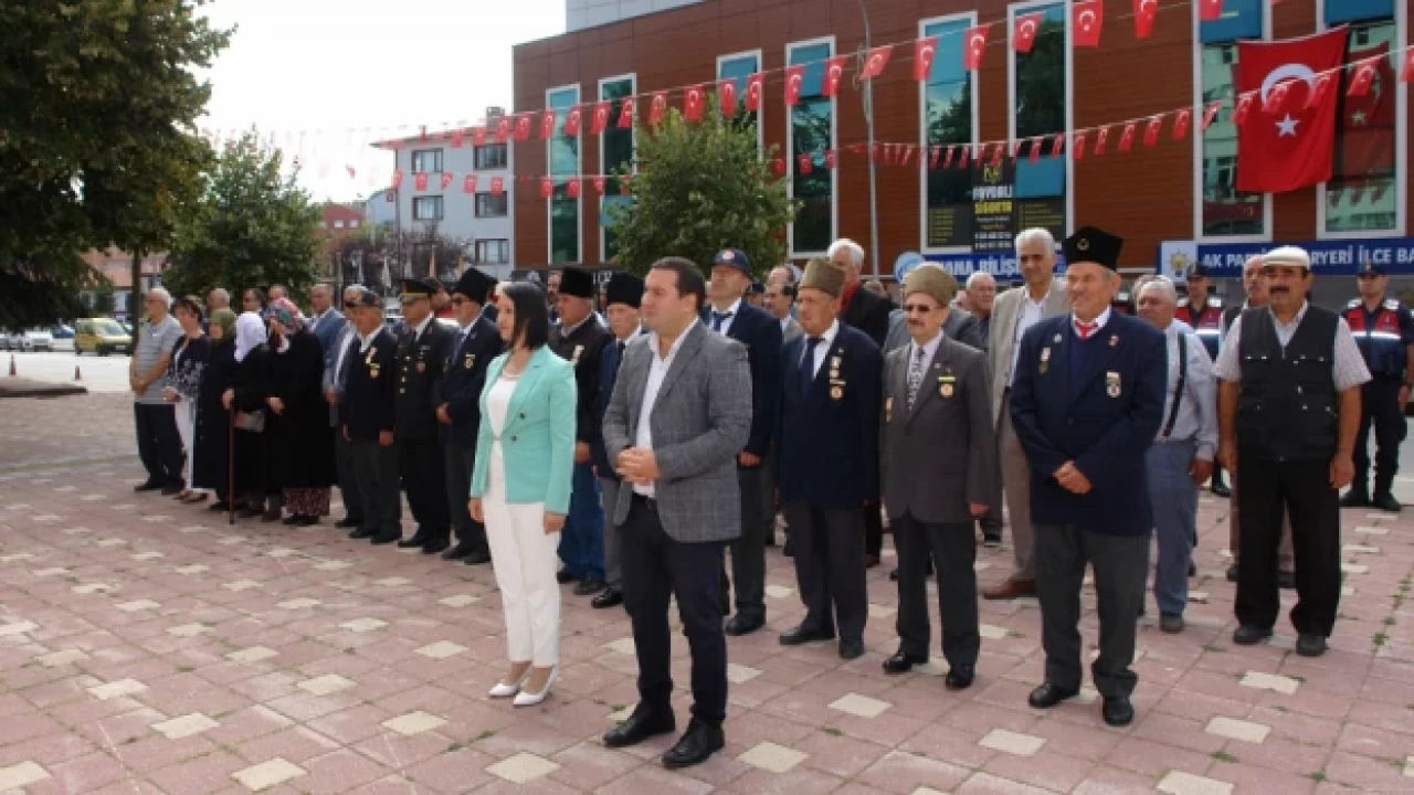 Pazaryeri ilçesi Hükümet Konağı önünde düzenlenen törene, İlçe Kaymakamı Ferhat Altay ve Belediye Başkanı Zekiye Tekin tarafından Atatürk Anıtı'na çelenk sunuldu.