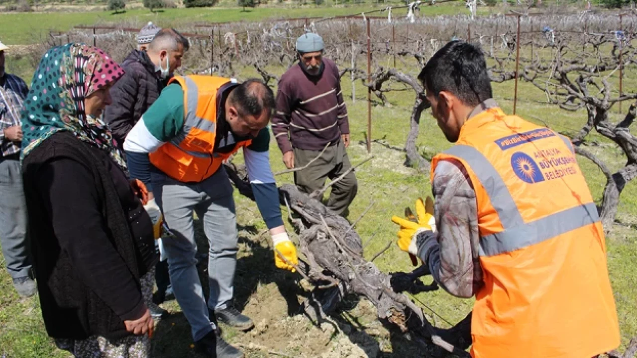 Antalya Büyükşehir Belediyesi, tarıma yönelik desteklemeler kapsamında ilçelerde çiftçilere uygulamalı budama ve aşı eğitimleri veriyor.