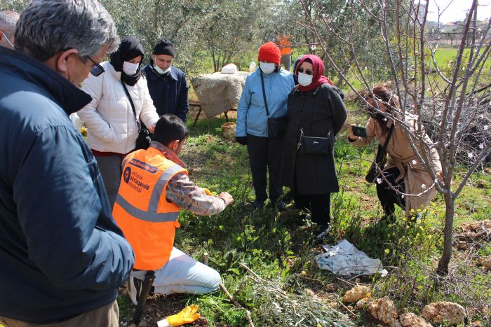 Hocalı Mahalle Muhtarı Hüseyin Dönmez de, “Özellikle yangında zeytin ağaçlarımız zarar gördü. Tam anlamıyla yanmamış olan zeytin ağaçlarımızın nasıl budanacağını arkadaşlar bizlere detaylı bir şekilde anlattılar” dedi.