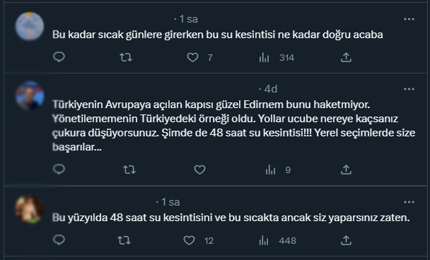 Vatandaşların 48 saatlik su kesintisine verdikleri tepkiler şu şekilde: