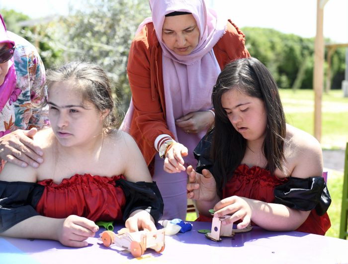 Engelli çocukların aileleriyle katıldığı atölyede fizik kanununu, itme – çekmeyi öğrenmelerini sağlayan balon araba yapıldı. Önce parçalara birleştirip araba yapan çocuklar, renkli kalemlerle yaptıkları arabaları diledikleri gibi boyadı. Arabaların tamamlanmasının ardından balonlarını şişiren çocuklar, o balonları arabalara bağlayarak birbirleriyle yarıştırdılar.