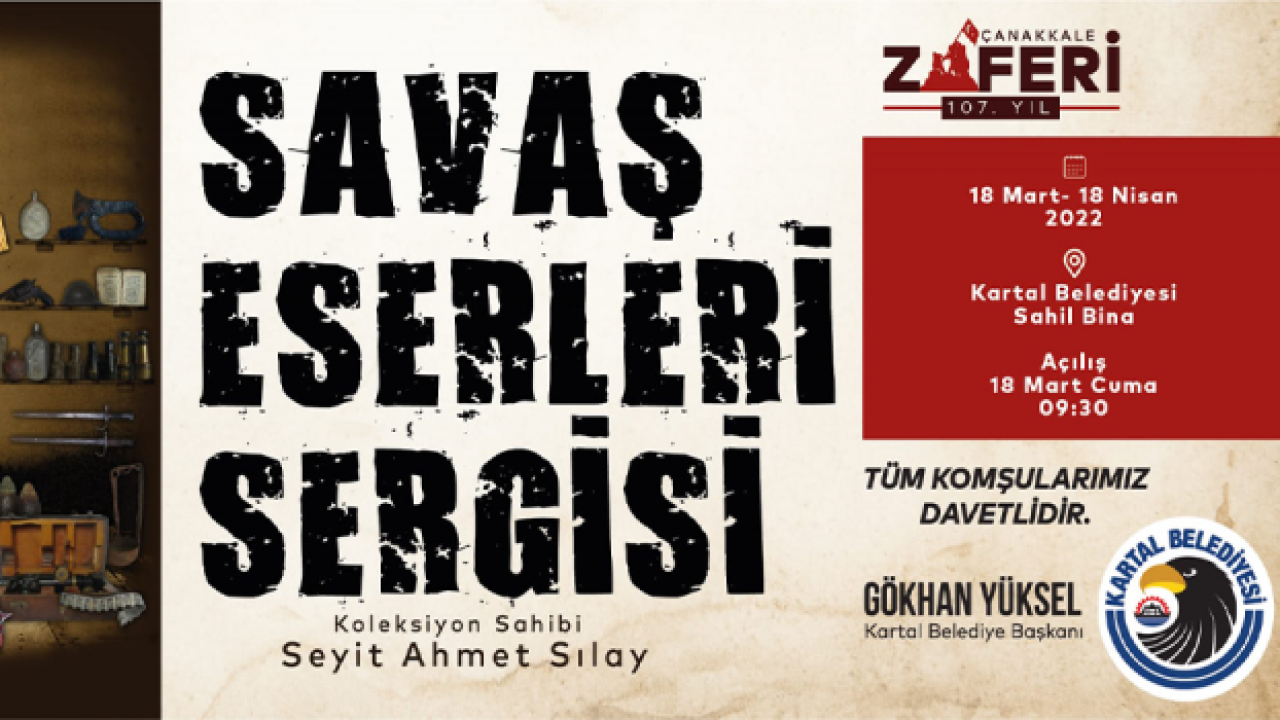Koleksiyoner Seyit Ahmet Sılay’ın, 15 yıl boyunca topladığı Kurtuluş Savaşı harp malzemeleri, Çanakkale Zaferi’nin 107. yıl dönümünde bir sergi ile Kartal Belediyesi Sahil Hizmet Binası’nda açılacak.