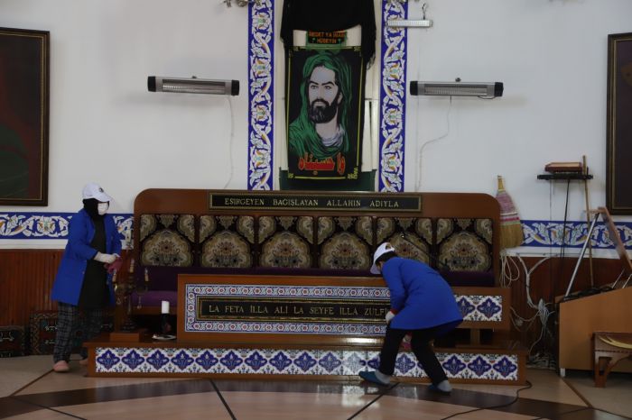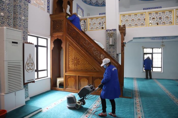 İbadethanelerin ortak kullanım alanlarında detaylı iç ve dış temizlik gerçekleştiren ekipler, bir yandan da ortak kullanım alanları ve yüzey temasının olabileceği alanların tamamı ile ibadethanelerin dışında kalan bahçe alanlarını, bankları, abdest alınan bölümleri de titizlikle dezenfekte ediyor. Cami ve cemevlerine gelen vatandaşların dokunabileceği duvarlar, merdivenler, korkuluklar, ayakkabılıklar, kapılar, tırabzanlar, dezenfektan üniteleri de temizlik ve dezenfekte işleminden payını alıyor.