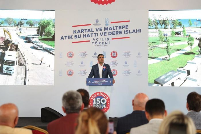 İstanbul Büyükşehir Belediyesi (İBB)’nin ‘150 Günde 150 Proje’ hedefleri kapsamında hayata geçirdiği Kartal ve Maltepe’de yapılan atık su hattı ve dere ıslahı projelerinin açılışı, Maltepe sahil alanında düzenlenen tören ile yapıldı. Yapılan çalışmalar kapsamında Kartal ve Maltepe ilçelerinde 10.3 km atık su kolektör hattı, 32.9 km atık su şebeke hattı, 6.4 km yağmur suyu hattı ve 2 km dere ıslahı imalatları tamamlandı.