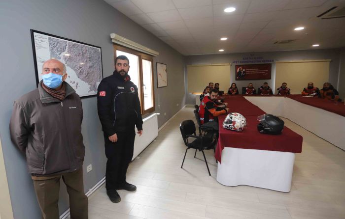 Öte yandan eğitimlerin devam ettiği dakikalarda Kartal Sivil Savunma Uzmanlığı Yerleşkesini, Boğaziçi Üniversitesi Kandilli Rasathanesi ve Deprem Araştırma Enstitüsü Bölgesel Deprem Tsunami İzleme ve Değerlendirme Merkezi Müdürü Doç. Dr. Doğan Kalafat ziyaret etti. Devam eden eğitimi bir süre izleyen Kalafat, Kartal’daki Sivil Savuma Uzmanlığı’nın çalışmaları ve eğitim faaliyetleri ile ilgili bilgi aldı. İlerleyen günlerde özellikle Kartal’da deprem ve sismoloji ölçümü ile ilgili yapılacak işbirliği protokolüyle ilgili görüş alışverişinin yapıldığı ziyarette, Kalafat’a Kartal Belediyesi Sivil Savunma Uzmanlığı Müdürü Nurettin Yazar ve Destek Hizmetleri Müdürü Cem Çetin tarafından bilgi verildi.