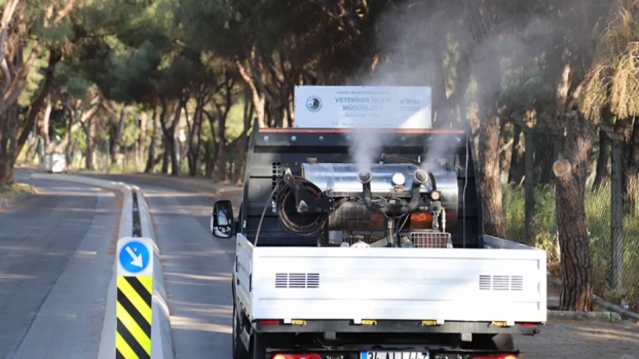 Kartal’ın 20 mahallesinin belirli bir program dâhilinde ilaçlandığı çalışmalarda hafta içi her gün toplam 9 mahallede 4 farklı araç ve ekip görev alıyor.