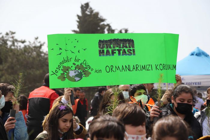 Etkinliğe katılanlara hitaben bir konuşma yapan ve iklim krizinin yaratacağı sorunlara karşı dikkat çeken Çevre Koruma ve Kontrol Müdürü Deniz Karacan; "Dünyayı ciddi anlamda bir kuraklık bekliyor. Dünya genelinde çok çarpık bir kentleşme var. Biz sizlerin geleceği için mücadele ediyoruz. İleride bu sıkıntıları yaşamamak için sizlere sesleniyorum. Ormanlarımızı, suyumuzu koruyalım. Hep birlikte ekosisteme sahip çıkalım. Gelecek çocukların elinde. Çocukların bunları bilinçli bir şekilde öğrenmeleri ve duyarlılık kazanmaları adına birçok etkinlik düzenliyoruz. Çevreyle ilgili olarak okullarda sürekli eğitimler veriyoruz. Bugün burada Orman Haftası nedeniyle sınırlarımız içerisinde yer alan Aydos Ormanı'nı temizleyip fidan dikimi dikerek doğamıza sahip çıkacağız." dedi.