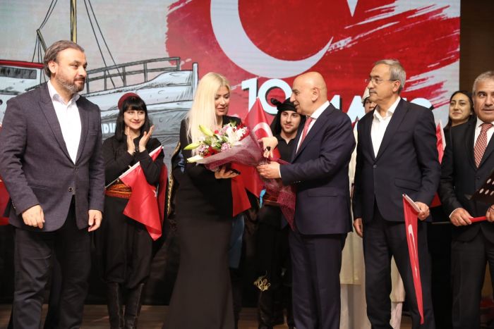 “İstanbul işgal altında. Bir ferman yayınlatılıyorlar. İngiliz mandasına gireceğiz deniyor. Böyle bir durumda genç bir subay çıkıyor, ‘Ya istiklal ya ölüm’ diyor. İki seçenek var. ‘Ya bağımsız oluruz ya da şehadet şerbetini içeriz’ diyor. Samsun’da başlayan Milli Mücadele dalga dalga yurdun her tarafına yayılıyor. Bir tarafta Sütçü İmam, bir tarafta Gazeteci Hasan Tahsin, bir tarafa Şahin Bey… Yedi düvele karşı verdiğimiz mücadele ve kanlarımızla yazdığımız kahramanlık destanımızın sonucunda Türkiye Cumhuriyeti Devletimizi kuruyoruz. Mehmet Akif’in dediği gibi ‘Rabbim Türk milletine bir daha İstiklal Marşı yazdırmasın’. Zafer marşları yazdırsın.”