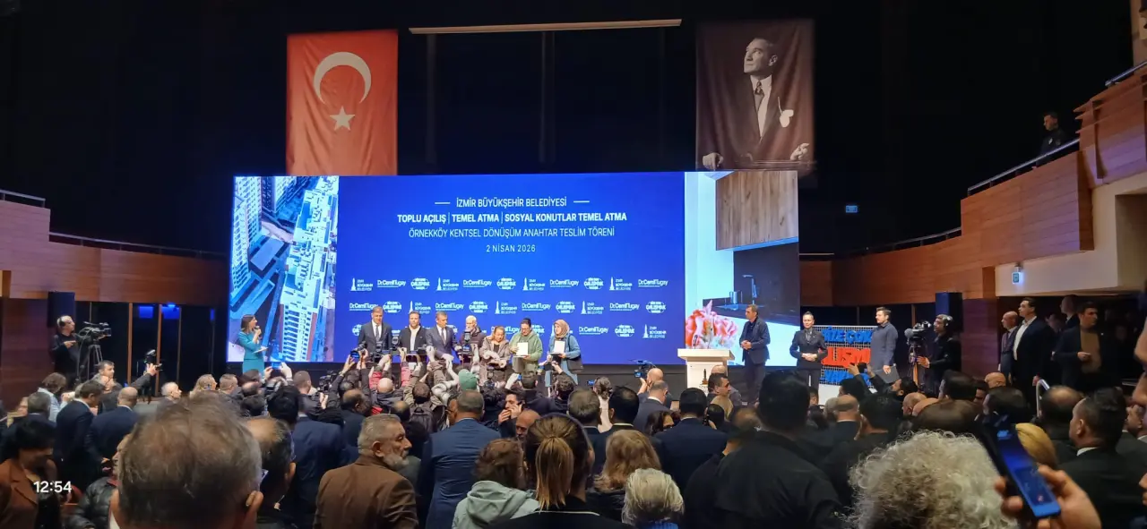 İzmir Büyükşehir Belediyesi’nin kent genelinde hayata geçirdiği projeler için düzenlenen toplu açılış, temel atma ve anahtar teslim töreni, CHP Genel Başkanı Özgür Özel’in katılımıyla gerçekleştirildi. Ahmed Adnan Saygun Sanat Merkezi’nde düzenlenen törende, ulaşım, altyapı, çevre ve sosyal yaşam alanlarını kapsayan çok sayıda proje hayata geçirilirken yeni yatırımların da temeli atıldı.
