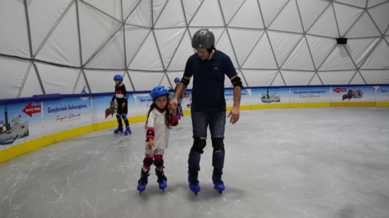 Keçiören Belediyesi'nin çocuklara ve gençlere hizmet verdiği Ahmet Çalık Buz Pateni Pisti yoğun ilgi görüyor.
