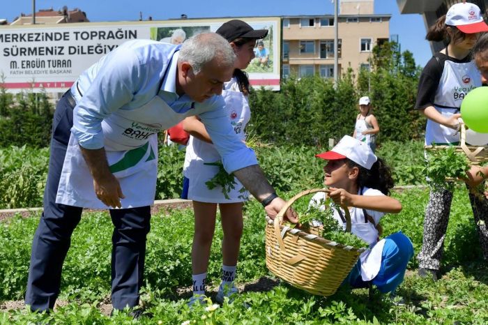 Çocuklarla birlikte bahçede meyve sebze hasadı yapan Fatih Belediye Başkanı M. Ergün Turan, “Yedikule bostanlarıyla meşhur mahallemiz. İki yıl önce sekiz dönümlük alanda güzel bir bahçe yaptık. Fatih’teki tüm çocuklarımız buraya gelerek tohum aşamasından hasada kadar tüm aşamalarda bir yandan eğitim alıyorlar diğer yandan çevre, doğa bilinçleri gelişiyor. Her uğradığımda çocukların ne kadar keyifle bu işi yaptıklarını görüyorum. Ayrıca aileler burada kahvaltı yaparak keyifli vakit geçirebiliyorlar. İlginin yoğun olduğunu görünce Ayvansaray’da da bahçe yapıyoruz kısa sürede hizmete açacağız.” dedi.