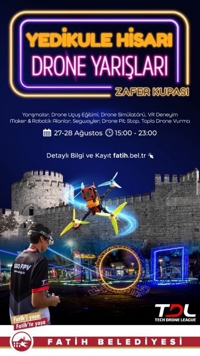 Fatih Belediyesi ile Türkiye’nin drone teknolojileri ve sporu alanında milyonlarca kişiye ulaşan Tech Drone League ortaklığında düzenlenen organizasyon 2 gün boyunca yarışların yanı sıra çeşitli etkinliklere de ev sahipliği yapacak.