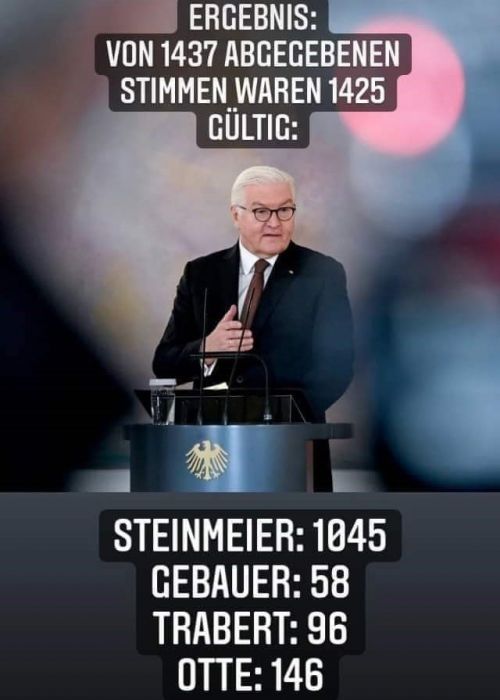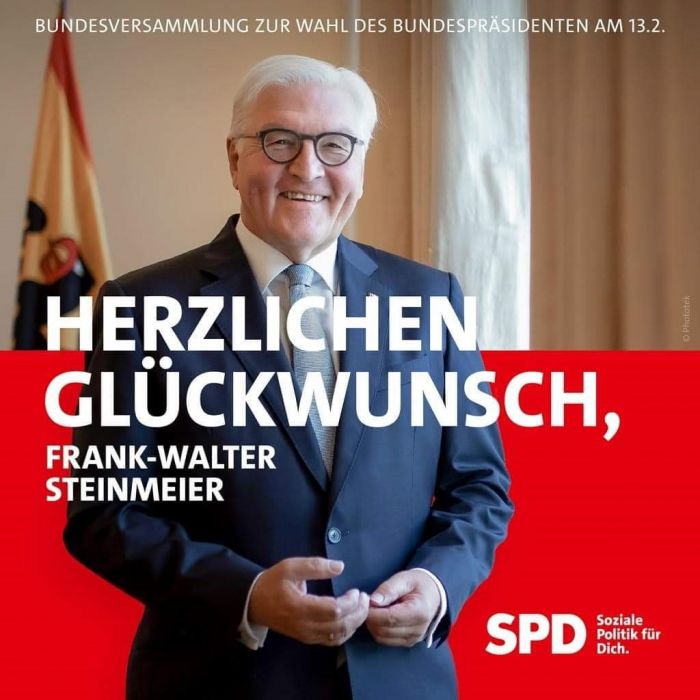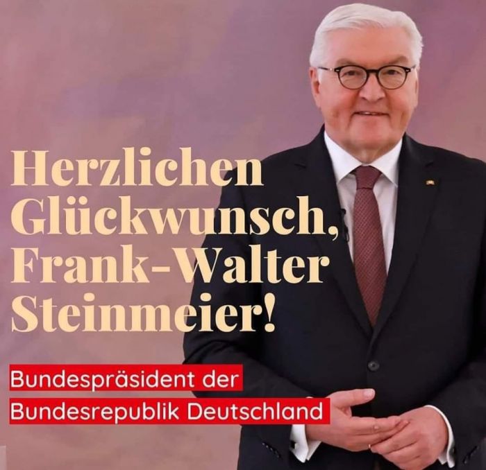 Birkaç gün önce Alman yurttaşlar ülkenin Cumhurbaşkanını seçti. İki büyük kitle partileri SPD ve CDU/CSU, son 5 yıldır çok başarılı bir yönetim gösteren Sayın Frank-Walter STEINMEIER`i destekliyordu. Biraz gecikmeli de olsa liberal parti FDP ve halen koalisyonda SPD, CDU/CSU ve FDP ile ülkeyi yöneten koalisyonun ortağı Yeşiller Partisi de doğru yolu gördü ve seçilme şansı en yüksek aday olan, SPD`nin adayı STEINMEIR`e desteğini açıkladı.
