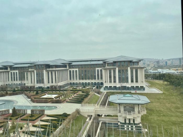 İnanmayacaksınız ama, güvenlik önlemlerinin had safhada olduğu binaya girişte, basın kartımızı sunduğumuz görevli, “başka kimliğiniz yok mu?” Diye ters ters bakıp, kartımızı iade etmesin mi? “Kartın üstünde Cumhurbaşkanlığı amblemi var!” deyişimizi duymazdan gelip, ancak ehliyetimizi görünce lütfedip bizi içeri aldı… Belindeki tabanca ve kamuflaj giysisiyle camın arkasındaki hanım görevli öyle ürkütücü duruyordu ki, “vallahi korktum” desem inanır mısınız?