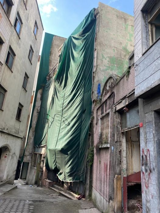 Ortalık tam bir mezbelelik. Metruk evlerin bir kısmının cephesine koruyucu örtüler çekilmiş. İnşaat faaliyeti başlamış bile. Verilen bilgiye göre, Zürafa, Alageyik ve Kadem Sokaklar’da toplam 42 genelev var. Bunların 37’si, bir zamanların vergi rekortmeni olarak tanınan genelev patroniçesi Matild Manukyan’a ait. Buralar Beyoğlu Kültür Yolu’nun bir parçası olacak da bu taşınmazların mülkiyet hakkı meselesi nasıl halledilecek, sorusu aklıma geliyor. Anlatılana göre Beyoğlu Belediyesi sadece dönüşüm projesiyle ilgilenecek; mülkiyet hakları eski mülk sahiplerine ait olacak.