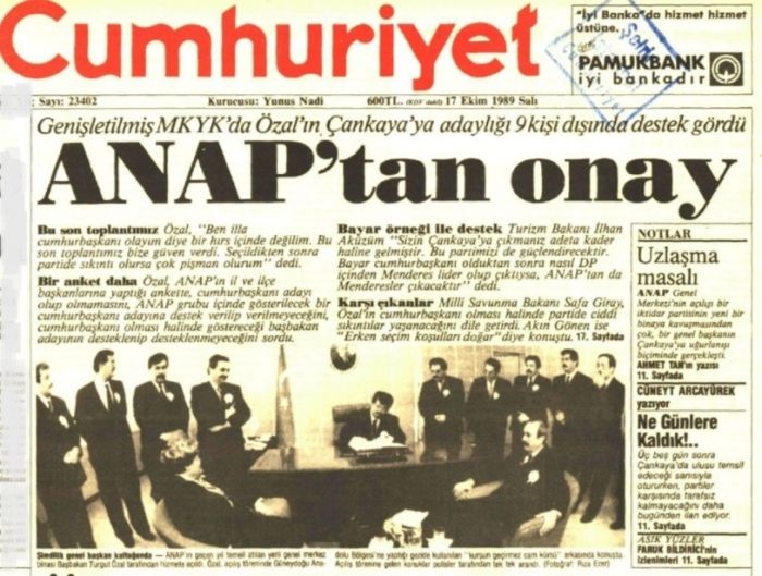 Halbuki Turgut Özal, o binanın 16 Ekim 1989’da yapılan açılış töreninde partisine veda etmişti; bir gün sonra da Meclis Grup toplantısında Cumhurbaşkanı adaylığını açıklamıştı. Açılış günü girdiği makam odasına belki bir iki kez daha uğramıştır. Çünkü adaylığını açıkladıktan bir hafta sonra da TBMM’de oylamalar başlamıştı. Özal, ANAP Genel Başkanlığı ve Başbakanlığı bırakacağı kişiyi belirleyeceği toplantıları da Başbakanlık konutunda yapıyordu.