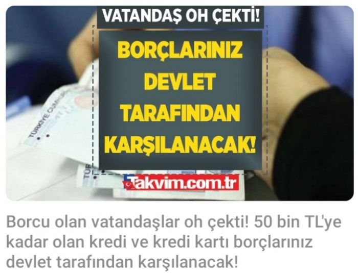 Takvim internet sitesi, bu kez de “50 bin liraya kadar olan kredi ve kredi kartı borcu devlet tarafından karşılanacak” diye yalan haber yayımladı.