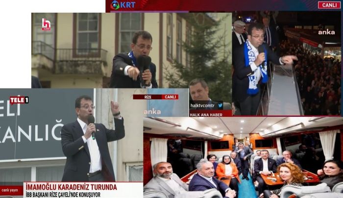 İmamoğlu’nun Karadeniz gezisi, bir siyasetçinin her adımının canlı yayınlarla izleyiciye aktarılmasının abartılı bir örneği oldu. Eleştirel kanallar, iktidar TV’lerinin Erdoğan ve AKP sözcülerine yaptığı gibi halkla ilişkiler faaliyeti yürüttü iki gün boyunca.