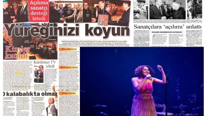 Üstelik iktidar medyası, Aynur Doğan’ın, eski bakanlardan AKP’li Hüseyin Çelik’in anımsattığı gibi, “Çözüm Süreci”nde 2010 yılında Dolmabahçe’de düzenlenen toplantıya çağrılan ve “Avrupa Kültür Başkenti” törenlerinde Kürtçe Türkü söylemiş bir sanatçı olmasına da aldırmadı. AKP’li bir belediyenin yaptığını savunmak için sanatçıyı karalamayı görev bildi.