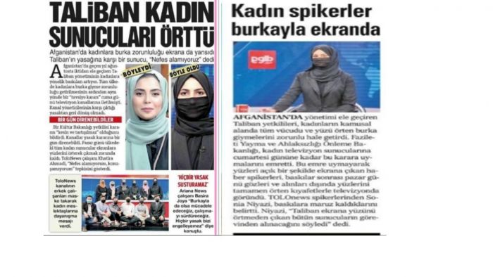 - Sözcü ve Akşam, “Afganistan’da kadın spikerler burkayla ekrana çıktı” haberi yaptı ama fotoğraftaki kadın sunucu burka giymemiş, peçe takmıştı.