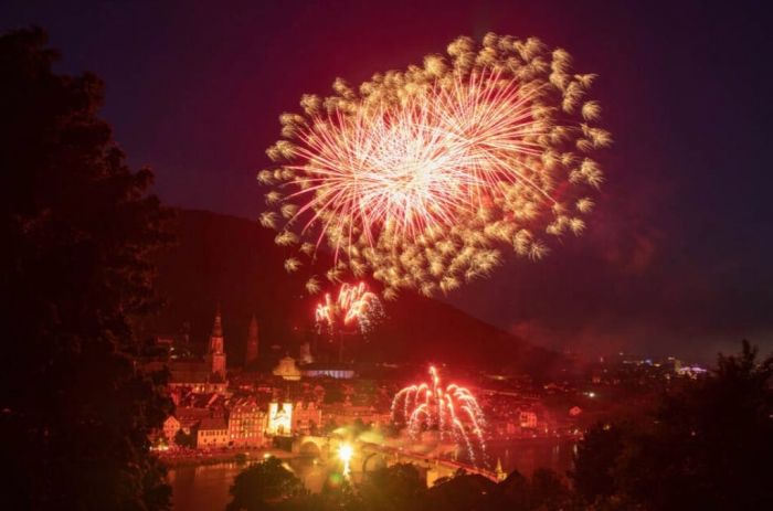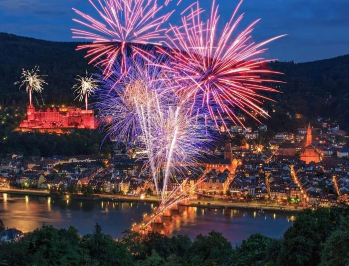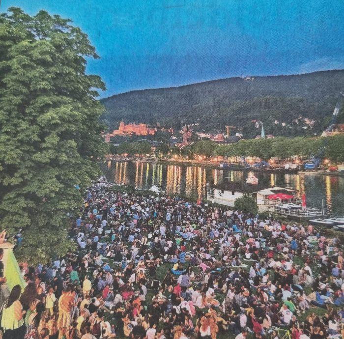 Öğle saatlerinde caddeler, sokaklar ve şehrin tam ortasından akan, Ren Nehri`nin bir kolu olan Neckar Nehri`nin iki yakası dolmaya başlıyor. Akşam serinliğinde nehir kenarında yer bulmak totoda önemli bir sayı tutturmak gibi bir şey. Havai fişekler, Neckar Nehri`nin üzerindeki, şehrin 3 simgesinden birisi olan Eski Köprü (Alte Brücke) üzerinden atılıyor... Köprünün güney doğusunda, dağın eteğinde bulunan Heidelberg Kalesi ışıklandırılıyor. Otuz Yıl Savaşları`nda (1618-1648) Fransız topçusunun yıktığı Heidelberg Kalesi, yaklaşık 70 yıldır milim milim, gıdım gıdım restore edilen bu kale, karanlıkta tüm ihtişamıyla ortaya çıkıyor bu sayede... Heidelberg Kalesi`ni gezmiş olanlar bilir, içinde tam 28 tonluk bir şarap fıçısi mevcut bu kalenin. Bölgede hüküm süren Beylikten kalma.