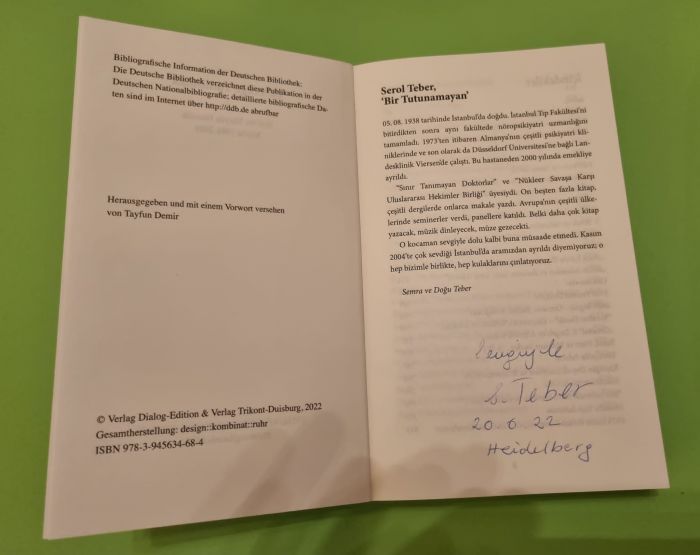 Dostum, arkadaşım, aile dostum ve yoldaşım Dr. Serol TEBER`in dergilerde yayınlanmış olan makaleleri, yazıları, konuşmaları ve seminer notları (1981-2001) Verlag Trikont (Trikont Yayınevi, Duisburg, 2022) tarafından bu yılın başında yayımlandı.