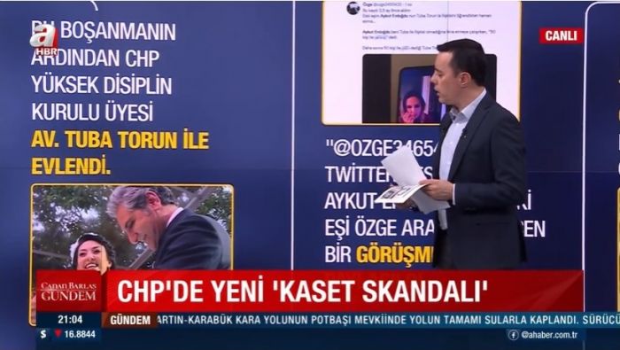 CHP Milletvekili Aykut Erdoğdu’nun eski eşiyle yaptığı konuşmanın görüntü kaydı ile İhlas Holding’in bir yöneticisiyle ilgili görüntüler aynı gün sosyal medyaya düştü. O akşam A Haber televizyonunda “Canan Barlas ile Gündem” programı vardı.
