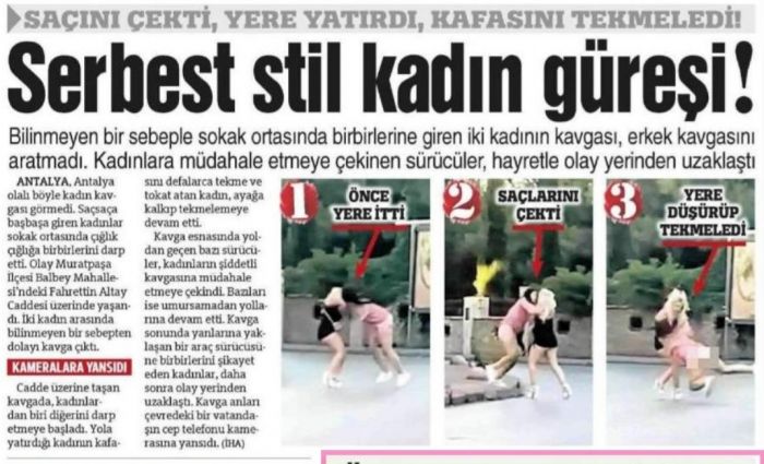 - Sözcü, iki kadının kavgasını “Serbest sitil kadın güreşi” başlığıyla cinsiyetçi ve kadınları aşağılayan, alay eden bir dille yayımladı.
