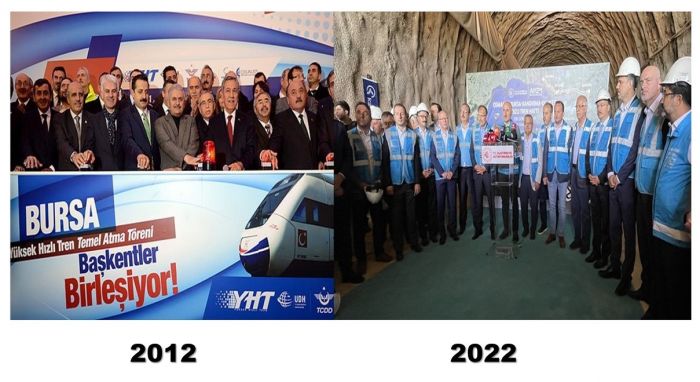 Aradan 10 yıl geçmişti ama Karaismailoğlu bu törende “Çalışmalarımızı hız kesmeden 7/24 sürdürerek, 2,5 yıl içinde bitireceğiz” diyordu! Cumhuriyet, iki törendeki iki bakanın konuşmalarını bir araya getiriyor, hattın açılışının yılan hikayesine döndüğünü, temel atarken 2016’da tamamlanacağı söylenen hat için şimdi 2025 tarihi verildiğine dikkat çekiyordu.