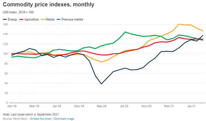 Grafik: Emtia fiyatları endeksi, 2019=100, Kaynak: Dünya Bankası