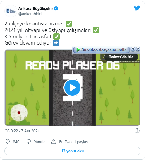 2021 yılında Ankara Büyükşehir Belediyesi asfalta 1,6 milyar TL yatırım yapması sayesinde otomobil şirketlerine sadece ekimde bir yıllık asfalt parası kadar, devlete de bir yıllık asfalt parası kadar paranın halktan aktarılmasını sağlamış.