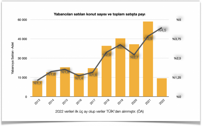 Konut fiyatları ve kira artışlarının dayanılmaz hale geldiği Ocak-Mart döneminde yabancıların payı yüzde 3,9’dan 4,5’a çıkmış.