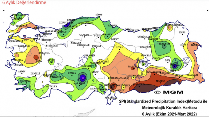 2021 yılı kuraklık nedeniyle kötü bir yıl oldu. Bu yılın altı aylık kuraklık raporları kuzey Ege, doğu Akdeniz, doğu Anadolu ve güney doğu Anadolu'yu hala kurak gösteriyor. 3 aylık raporlar ise bir nebze daha iyi olsa bile bu resim geçen yıldan iyi ama pek de normal olmadığını gösteriyor. Ama uyarımız bu değil.