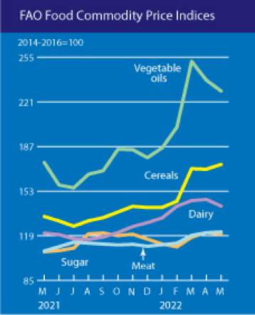 Bu fiyatlarda artışın katmerli olduğu alanlar da var. Rusya’nın Ukrayna’ya saldırması ile bu artışlarda özellikle bitkisel yağ ve tahıl boyutu öne çıktı. Bunun da grafiğini aşağıda bulabilirsiniz.
