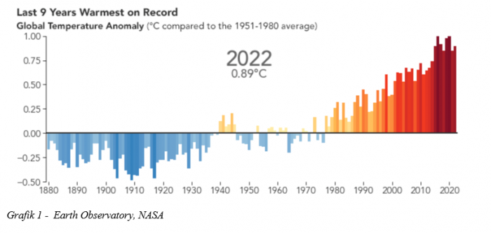 Yakından inceleyeceğimiz hedeflerden ilki sıcaklık artışını endüstriyelleşme öncesi seviyelere göre 2°C'nin altında tutmayı ve mümkünse 1.5°C'ye kadar sınırlamayı amaçlar. Bu kısımda kötü haber şu ki, Grafik 1’e bakıldığında da görüldüğü üzere 1951-1980 yıllarındaki ortalamaya kıyasla şimdiden 0.89°C daha sıcak bir dünyada yaşıyoruz… Tabloda da belirtildiği üzere son 9 yılda art arda sıcaklık rekorları kırıldığını göz önünde bulundurursak bu hızla 1.5°C’ye yaklaşmamız için çok da ekstra bir çaba sarf etmemize gerek kalmayacak gibi.