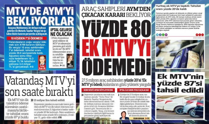 Türkiye gazetesinin ilk sayfasında “Yüzde 80 Ek MTV’yi ödemedi” haberinin yayımlandığı gün, Hürriyet’nin birinci sayfasında da “MTV’de AYM’yi bekliyorlar: 10 kişiden 7”si ödemedi” haberi yer alıyordu. Bu haberler o gün CNN Türk, NTV, Kısa Dalga ve Sputnik’in de aralarında olduğu birçok haber sitesinde de yayımlandı.