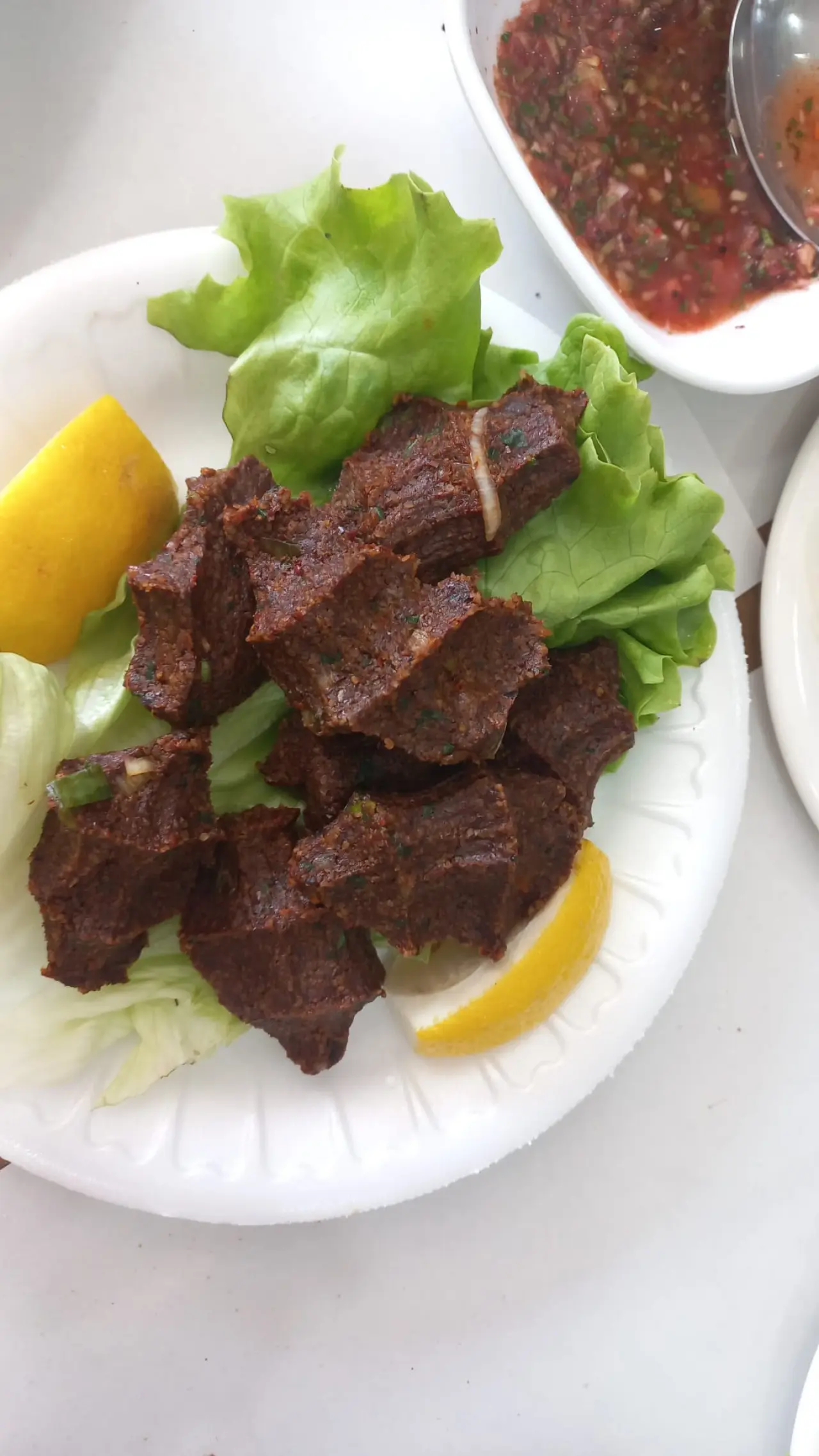 O çiğ köftenin dayanılmaz sarhoşluğu. Şanlıurfa’da dahi böylesini yemedim. Fotoğraflarda görüyorsunuz, ter içinde bin bir emekle hazırlandı.