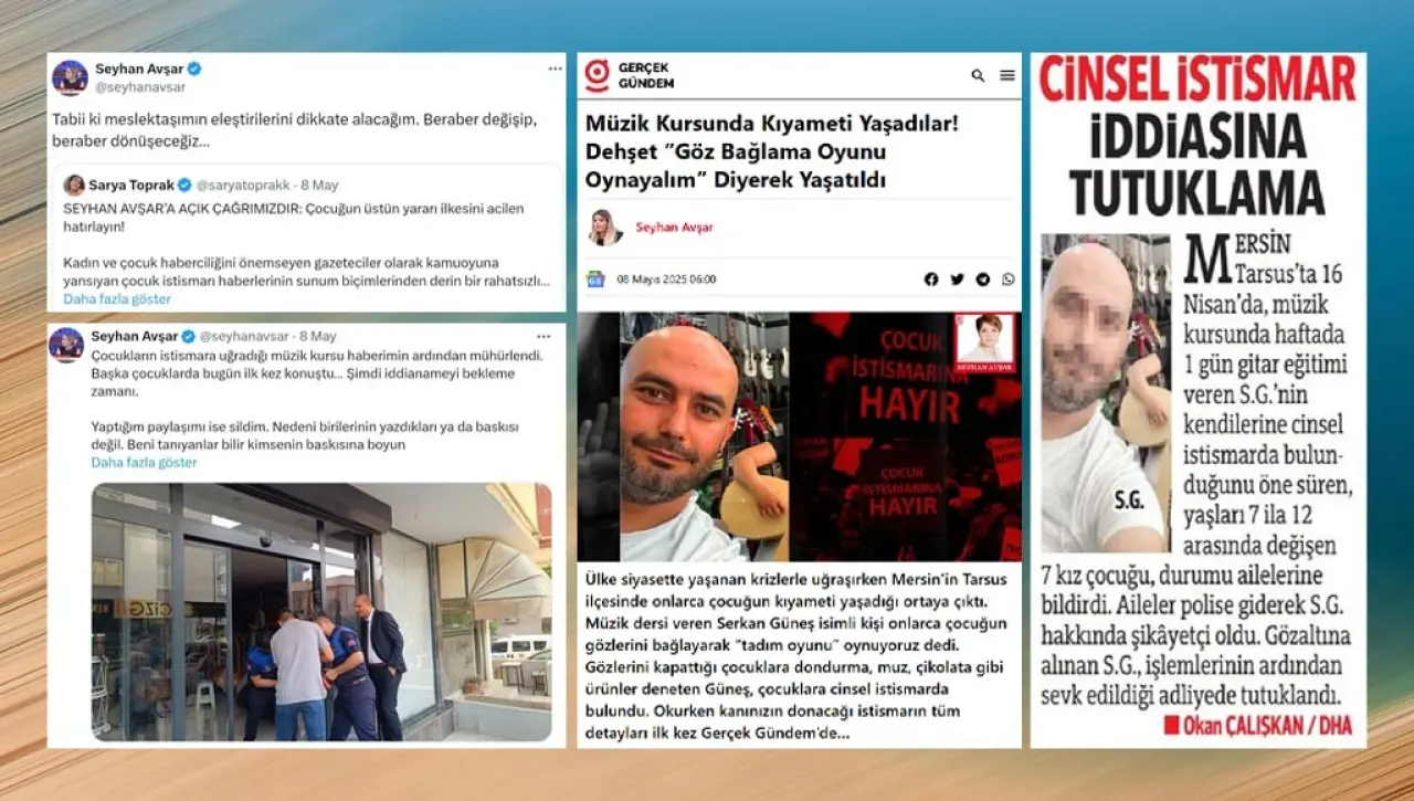 Tarsus’ta, bir müzik kursunda yedi çocuğa yönelik cinsel istismar “Müzik kursunda kıyameti yaşadılar! Dehşet “Göz bağlama oyunu oynayalım” diyerek yaşatıldı” başlığıyla haberleştirildi. Hemen altında da “Okurken kanınızın donacağı istismarın tüm detayları ilk kez Gerçek Gündem’de” diye yazıyordu.