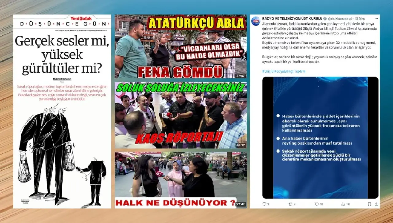 İktidar cephesinin yeni düşmanı “Sokak röportajları”.  Cumhurbaşkanı Erdoğan’ın ardından RTÜK’ün düzenlediği “Güçlü Medya Bilinçli Toplum Zirvesi”nden de “Sokak röportajlarında yeni düzenlemeler getirilerek güçlü bir denetim mekanizmasının oluşturulması” isteği geldi.