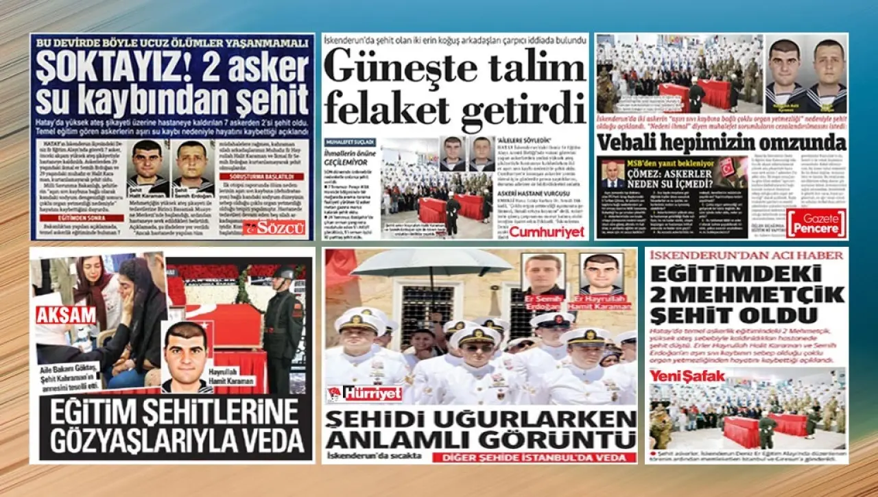 İktidar medyası, beklendiği gibi sadece açıklamayı yayımladı. Yeni Şafak, “Eğitimdeki 2 Mehmetçik şehit oldu” haberini yayımladı. Muhalif medya ise açıklama ile yetinmedi. Cumhuriyet, “Güneşte talim ölüm getirdi” diye manşetten yayımlarken, Birgün, Evrensel, Gazete Pencere, Nefes, Sözcü de “askerlere 45-50 derecede eğitim yaptırıp susuzluktan ölmelerine neden olunduğu” tepkilerini de yayımladılar.
