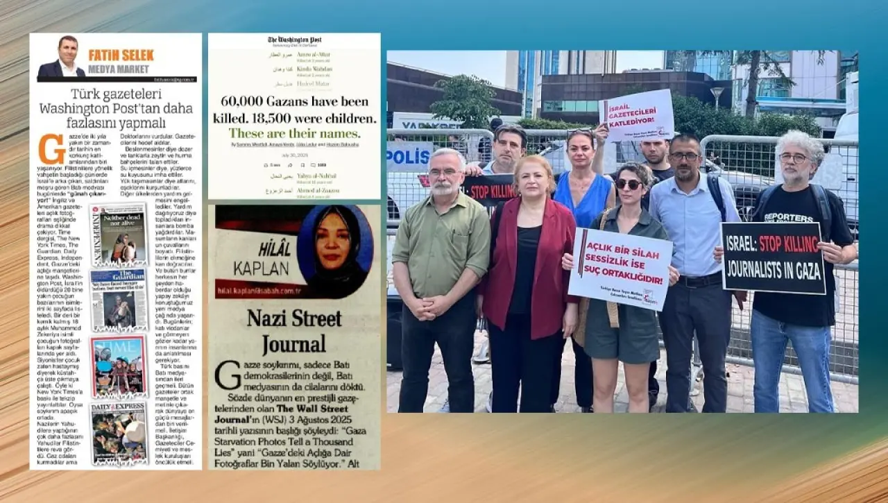 Ne yazık ki, böyle bir dayanışmanın çok uzağındayız. Türkiye Gazeteciler Cemiyeti, Sınır Tanımayan Gazeteciler Örgütü (RSF), Türkiye Gazeteciler Sendikası ve DİSK Basın İş, 29 Temmuz’da, İstanbul’da İsrail Konsolosluğu önünde “Filistinli gazetecilere destek” eylemi yaptılar. İsrail’in “uluslararası savaş kurallarını ve insancıl hukuk ilkelerini çiğneyerek 225 Filistinli gazeteciyi öldürmesini” kınadılar ve uluslararası toplumu İsrail’e caydırıcı yaptırımlar uygulamaya çağırdılar. “İsrail, Gazze’de gazetecileri aç bırakarak gerçekleri öldürüyor” dediler.
