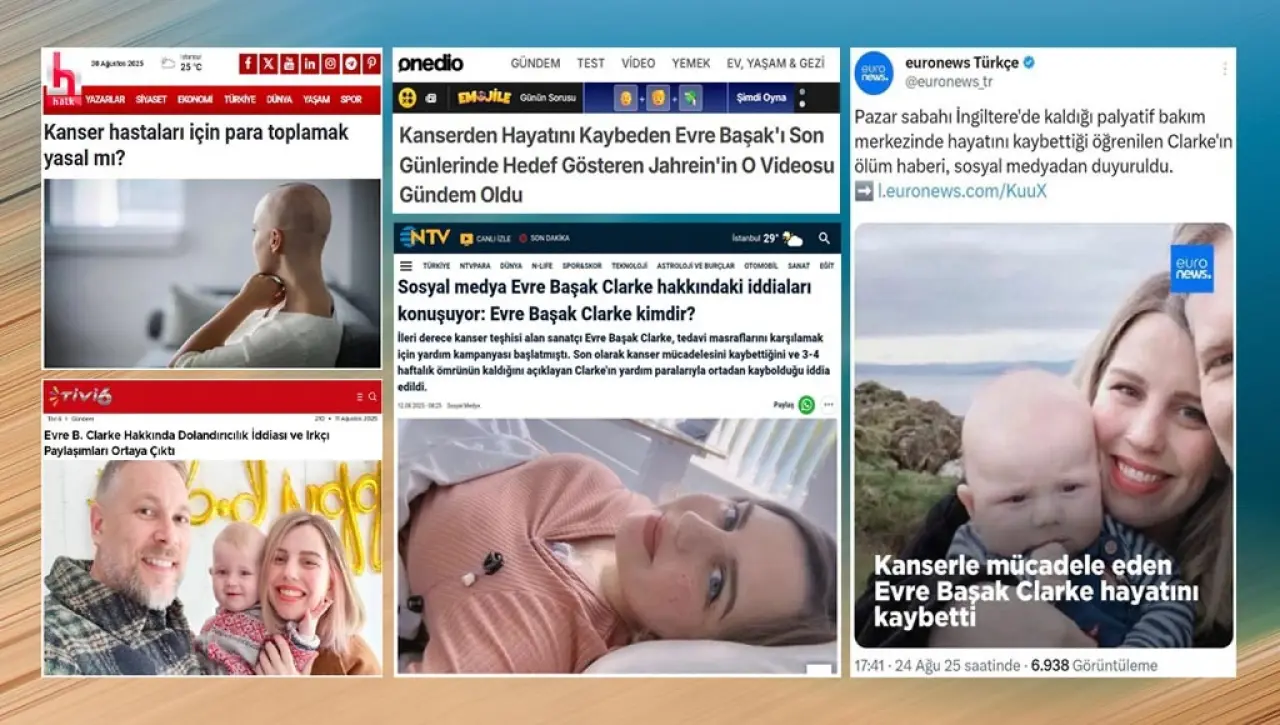 Halktv.com.tr, “Evre B. Clarke bilmecesi: Kanser olduğunu söyleyerek yardım toplayan Evre B. Clarke ile ilgili dolandırıcılık iddiası. Parayı topladıktan sonra doktor raporlarını, her şeyi siliyor. Hesabını kilitliyor, defolup gidiyor” diye yazdı. NTV’nin haber sitesi, “Sosyal medya Evre Başak Clarke hakkındaki iddiaları konuşuyor” haberi yayımladı. Sputnik, Onedio, Bundle, İşçi Haber gibi siteler de benzer haberlere yer verdiler.