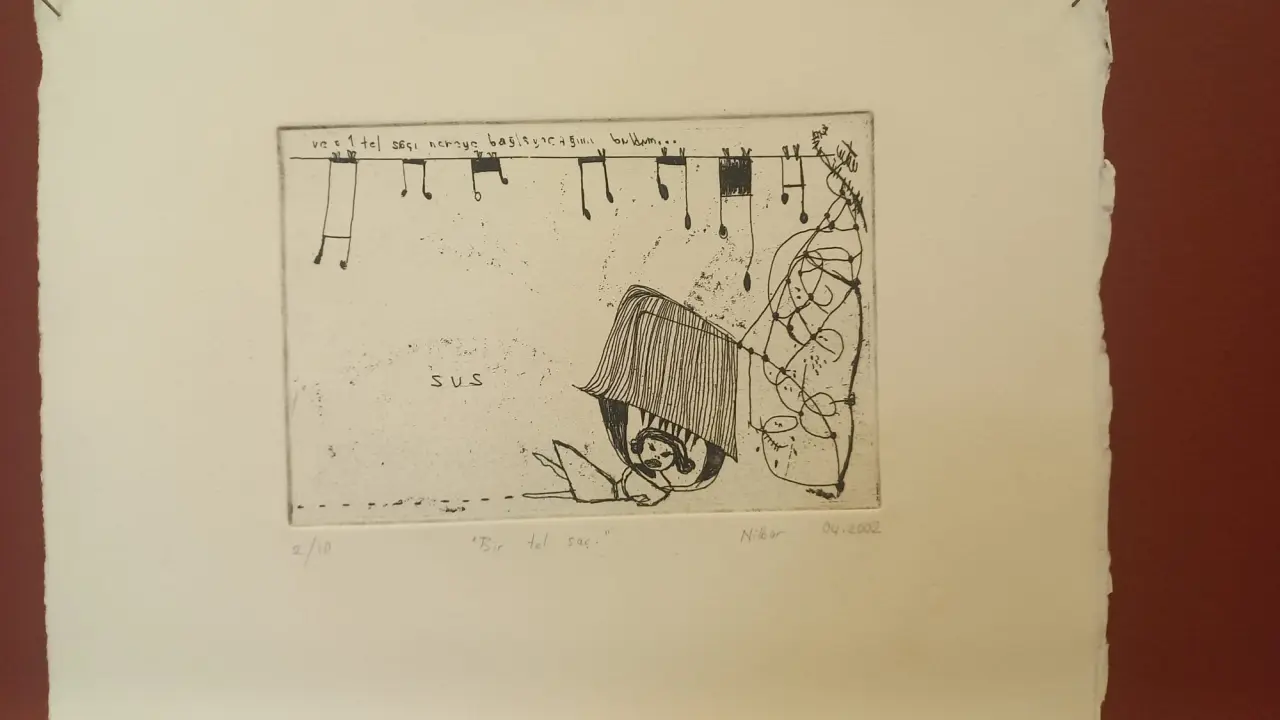 Tıpkı gerçek kadın saçından kullanılan ve Arter teşhir alanında yerdeki mevcut eserlerden oldukça yüksekte bir baca borusunun ucuna tıpkı bir uçurtma kuyruğu gibi aslı kalan kadının özgürlüğünü ifadesi gibi