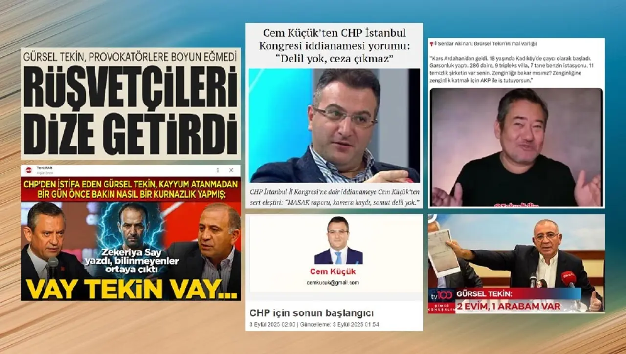 İktidar medyası ile kıyaslanamaz ama muhalif medyada da Gürsel Tekin’e bakış değişti. Yıllardır, el üstünde tutulan Gürsel Tekin’in, geçmişi didiklenmeye, malvarlığından söz edilmeye başlandı. Hatta Serdar Akinan, YouTube hesabında uçuk bir malvarlığı listesinden söz etti, ama Gürsel Tekin yalanladı; daha mütevazı bir liste açıkladı.